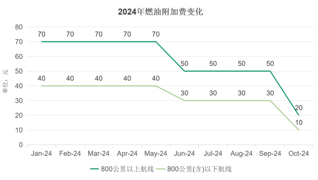 近月,国际油价下降趋势明显。10月,多家国内航司更相继宣布10月5日下调国内航线燃油附加费的好消息,代表着乘客们在支付机票费用的同时,能在燃油附加费上享受到一定的优惠。但对于航空公司来说,航空燃油的总成本依然高企,这使得燃油费用将继续占据航空公司运营成本的显著比例,通常超过30%。
